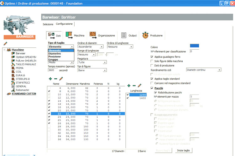 Système intégré d’optimisation du fer pour machines de coupe et de façonnage. Etudié aussi bien pour ceux qui produisent pour l’habitation civile que pour le travail public, il permet la coupe par diamètre, coupe par élément, coupe par position. Il permet en outre l’optimisation avec distribution des barres dans des dépôts et canaux, minimisation des chutes, minimisation des cycles de coupe (optimisation du temps de coupe), minimisation des changes de diamètre, triage de la production vers différentes machines de coupe, etc.